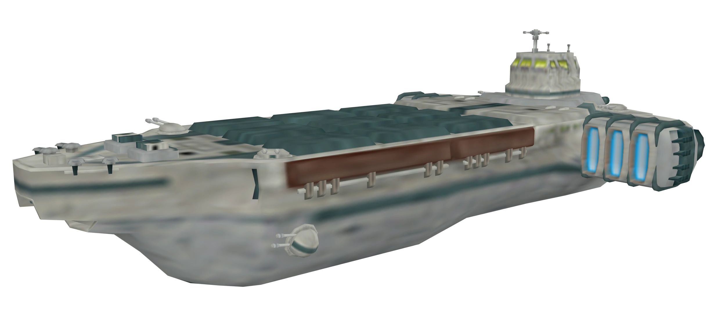 The transports are always escorted by squads of Aeropan fighters, and in one case, the last Pirate's Cove mission, Aeropan heavy fighters as well (though they only acted as escort fighters). The transport's only other means of defense are small mounted turrets, of which there are eight. Two are placed on either primary engine on the bottom side; another two are placed on either side of the wheelhouse on the top side; another pair are placed along the front side of the hull; and the final pair can be located on the upper deck.