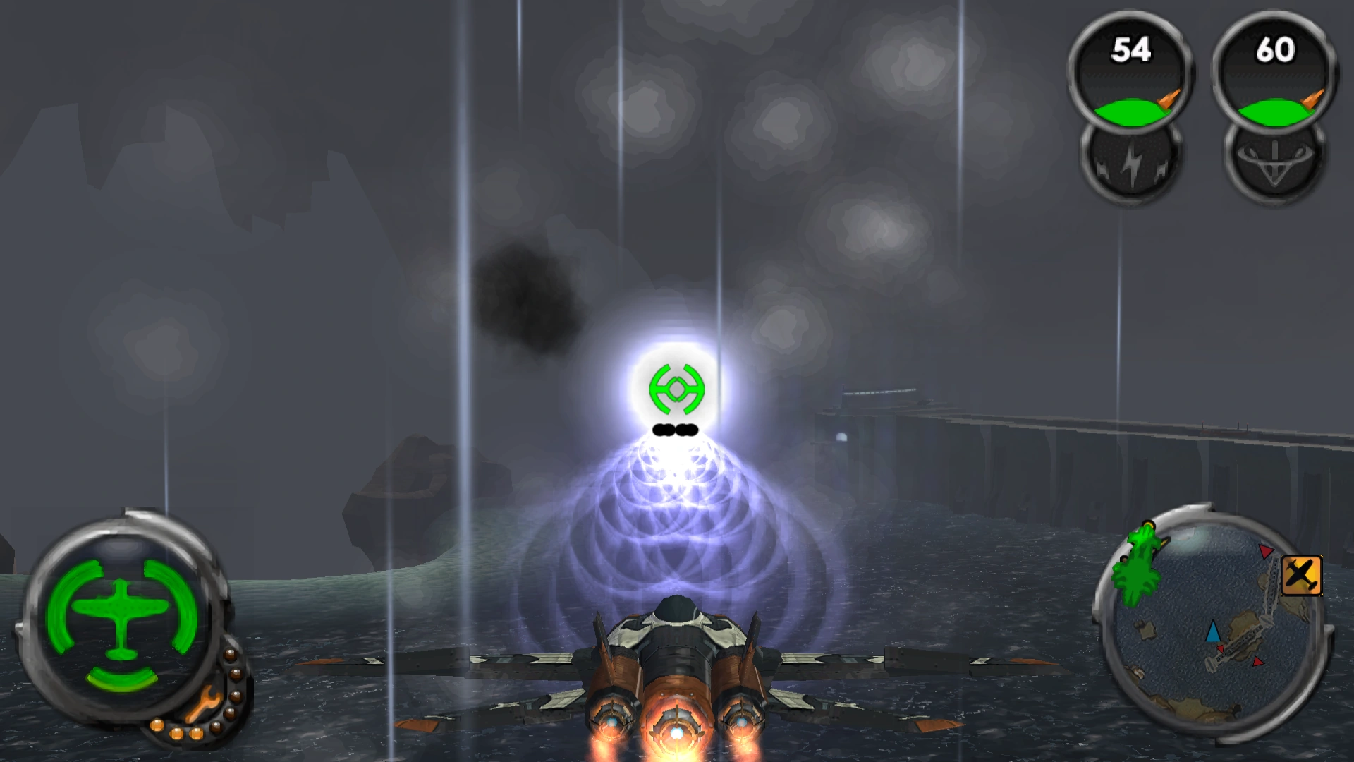 The Thunderhead flak cannon is an plane weapon featured in The Lost Frontier. A retrofitted anti-air artillery system mounted on an aerial platform, the flak cannon fires thick dark-colored orbs leaving behind purple trails. This weapon excels in dense combat zones with several small enemies, as the bullets do not need to score a direct hit, but rather burst open after reaching an enemy within its area of effect.