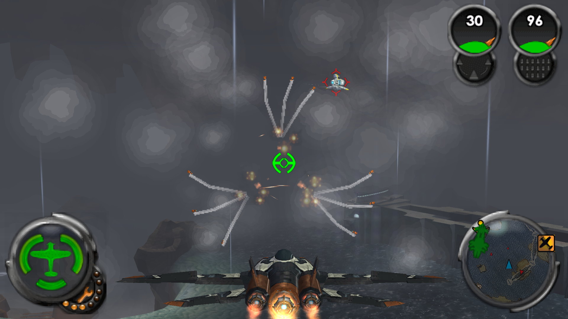 | Flak cannon | The Thunderhead flak cannon possesses powerful shells that deal lingering damage in the impact area for a short moment to any enemy aircraft that passes through. Its slow firing rate, ammo capacity, and reload time makes it troublesome against quick and larger number of enemies, but in turn it provides excellent damage opportunity against the slow, large, and cumbersome. | |